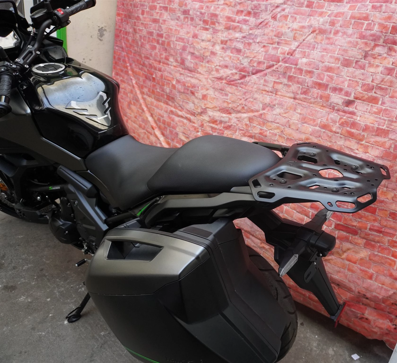 Zusätzlich montierte SW-Motech Gepäckablage zum sicheren Verzurren von Gepäck